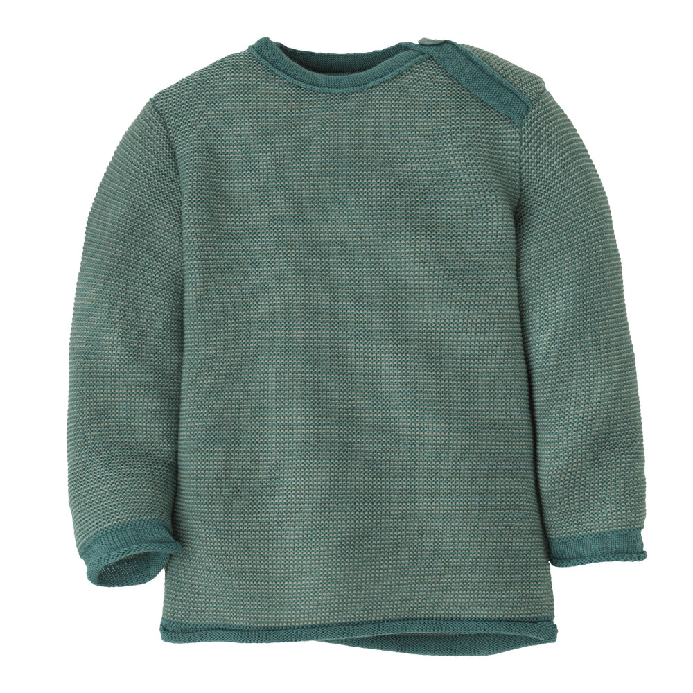 Pull bébé Disana en laine mérinos – Maille chinée duveteuse-Couleur Jade