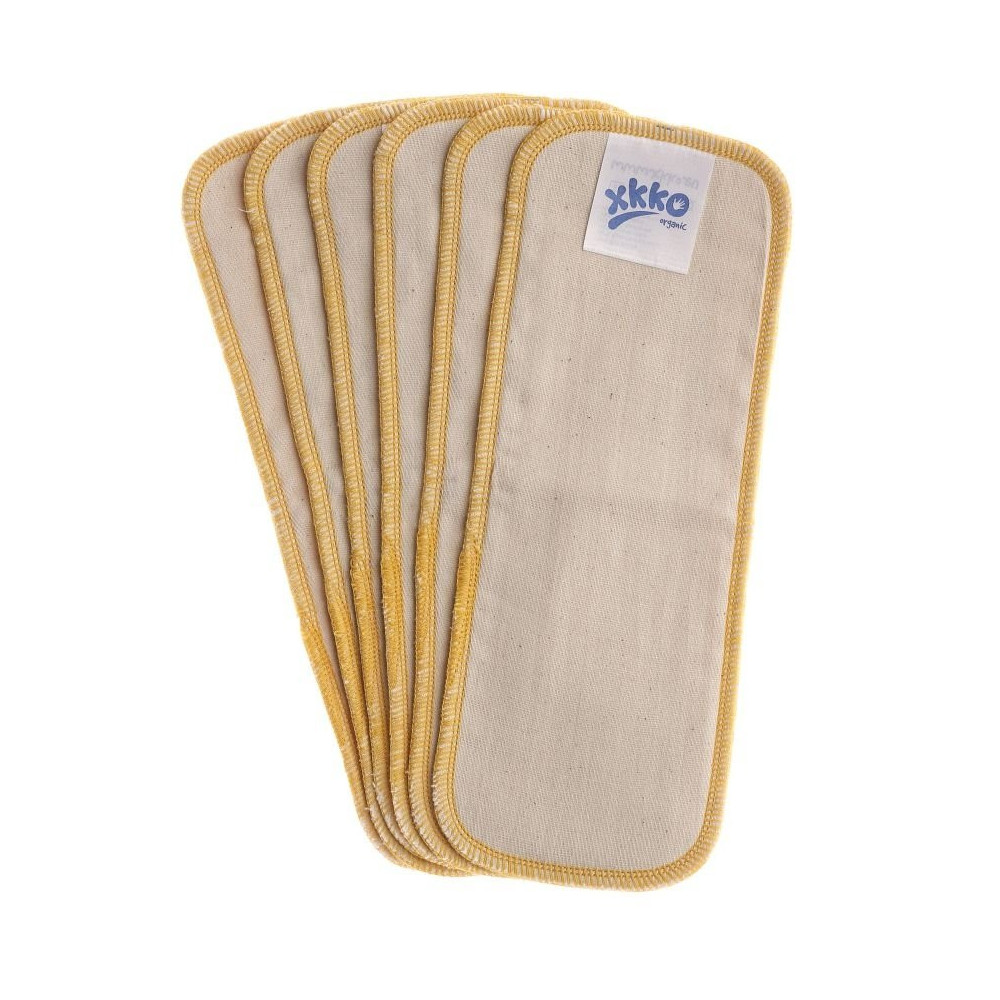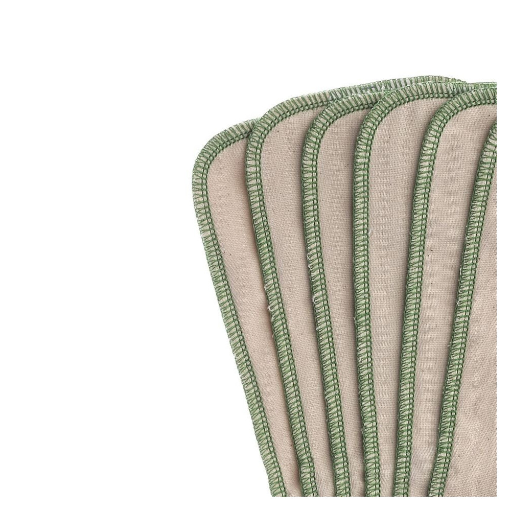 Lot de 6 inserts composés de 8 couches 100% coton bio, qui vont venir augmenter l'absorption des couches lavables.